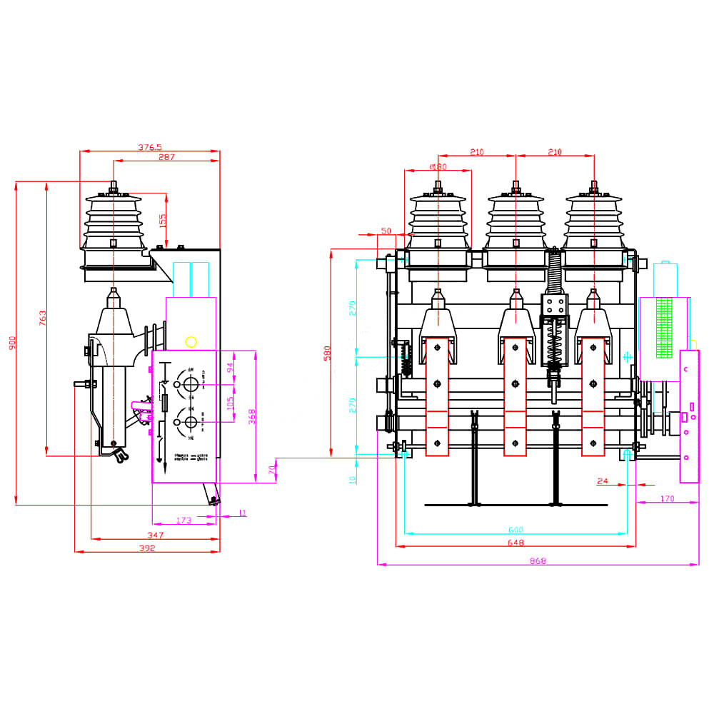 FKN12-12D/630-20 Switch beban voltan tinggi AC adalah suis voltan tinggi tiga fasa dengan voltan yang diberi nilai 12kV dan kekerapan sebanyak 50Hz. Ia digunakan untuk menukar arus beban, arus tertutup, pengubah tanpa beban dan pengisian kabel semasa, off gabungan litar pintas. Suis beban yang dilengkapi dengan suis asas dapat menahan arus litar pintas.