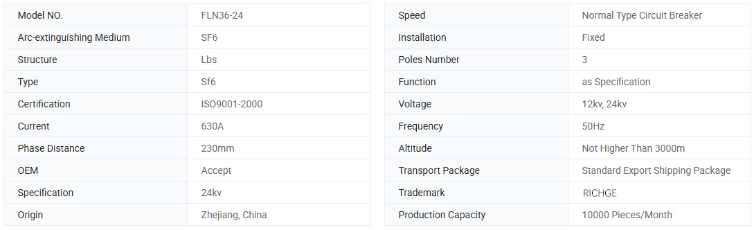 FLN36-24D LOAD BREAK SWITCH Gunakan gas SF6 sebagai pemadam arka dan medium penebat. Terdapat tiga stesen kerja: pembukaan, penutupan dan asas dalam suis. Ia mempunyai jumlah kecil, memasang mudah digunakan, adaptabiliam alam sekitar yang kuat dan ciri -ciri lain.