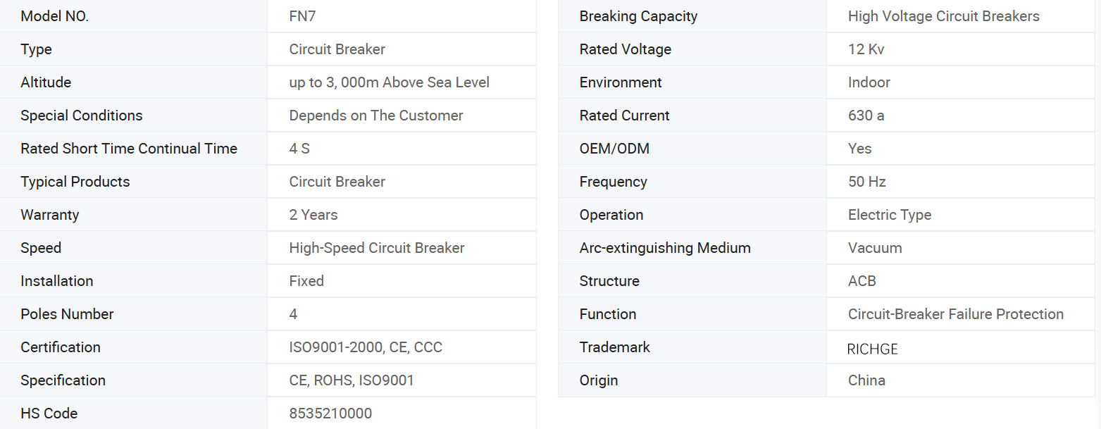 Switch beban voltan tinggi FN7-12 AC adalah jenis baru suis beban voltan tinggi yang menghasilkan gas. Ia sesuai untuk sistem kuasa AC tiga fasa dengan AC 50Hz dan voltan diberi nilai 12kV. Ia digunakan untuk memecahkan arus beban dan menutup arus litar pintas.