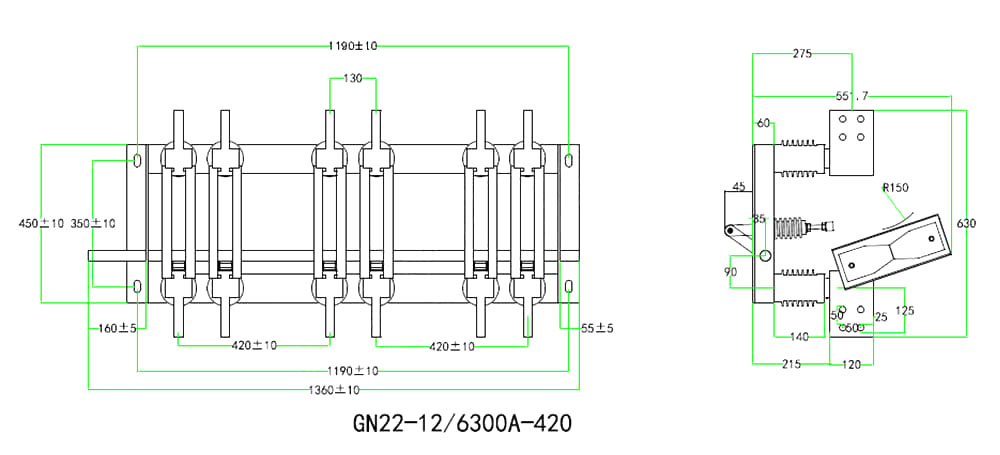 Gn22-12 (c) (d) siri switchgear voltan tinggi voltan voltan tinggi digunakan dalam sistem kuasa dengan voltan yang diberi nilai 12kV, 50Hz dan ke bawah, untuk menyambung, memutuskan sambungan atau menukar garis di bawah voltan tetapi tiada beban.