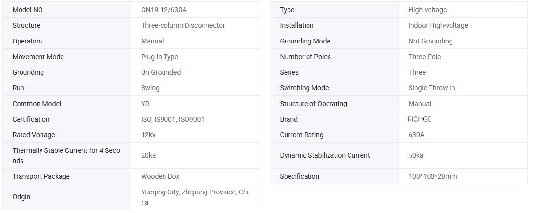 Suis Pengasingan Voltan Tinggi GN19-12 (C) Siri AC sesuai untuk AC 50Hz, voltan 12kV yang diberi nilai dan di bawah sistem kuasa, ia dilengkapi dengan mekanisme operasi manual CS6-1 dan digunakan untuk memecahkan dan membuat litar di bawah beban. Terdapat jenis pencemaran tambahan, jenis ketinggian tinggi dan jenis yang menunjukkan kuasa. Ia dibuat mengikut IEC 62271-102. Digunakan untuk menukar peralatan elektrik di bawah keadaan voltan tetapi tiada beban, terdapat juga dihantar untuk menghasilkan jenis anti-fouling, jenis dataran tinggi dan peranti paparan hidup yang boleh dipasang. GN19-12 Series suis mengasingkan voltan tinggi dalaman adalah peranti dalaman dengan voltan yang diberi nilai 12kV dan tiga fasa AC 50Hz.