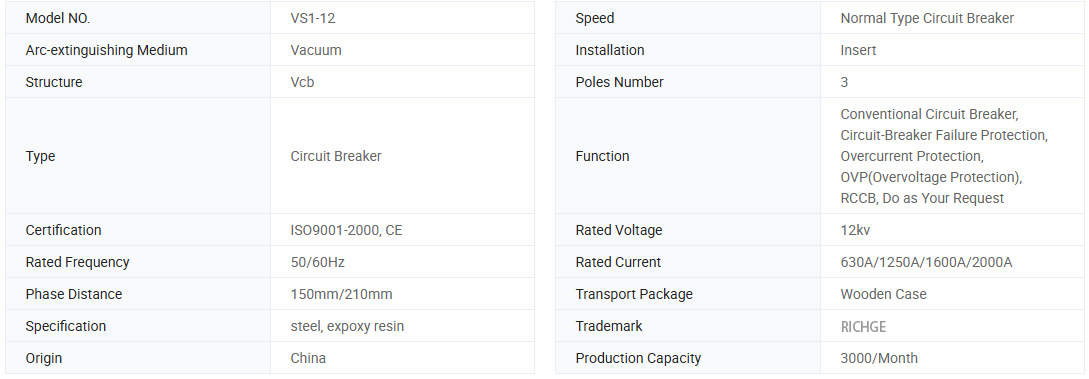 VS1 (Zn63A) -12Series pemutus vakum dalaman dengan silinder terlindung biasa adalah tiga frasa A.C. 50 Hz peralatan pengedaran kuasa dalaman dengan voltan yang diberi nilai 12kV. Ia digunakan untuk melindungi mengawal peralatan elektrik dalam bidang industri dan perusahaan perlombongan, loji kuasa dan pencawang. Jenis pemutus litar vakum ini mematuhi piawaian kebangsaan dan penetapan piawaian IEC, keupayaan mencapai gred M2-E2-C2.