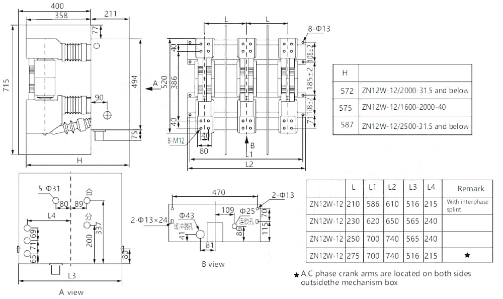 Pemutus litar vakum ZN12 siri adalah peranti switchgear voltan tinggi dalaman dengan voltan yang diberi nilai 12kV, 24kV, dan 40.5kV, dan tiga fasa AC 50Hz. Ia adalah produk domestik yang dibangunkan dengan memperkenalkan teknologi Siemens 3AF Jerman. Mekanisme operasi pemutus litar adalah jenis penyimpanan tenaga musim bunga, yang boleh dikendalikan oleh AC atau DC, atau secara manual. Pemutus litar mempunyai struktur mudah, kapasiti pemecahan yang kuat, hayat perkhidmatan yang panjang dan fungsi operasi lengkap. Dan tidak ada bahaya letupan, dan penyelenggaraannya mudah. Ia sesuai untuk suis kawalan atau perlindungan sistem penghantaran dan pengedaran kuasa seperti loji kuasa, pencawang dan perusahaan perindustrian dan perlombongan, terutamanya sesuai untuk memecahkan beban penting dan tempat operasi yang kerap. Borang pemasangan pemutus litar dalam kabinet suis boleh sama ada jenis tetap atau pemutus litar jenis yang boleh ditarik balik. Produk ini mematuhi piawaian yang berkaitan seperti GB1984, JB3855 dan IEC62271-100 "pemutus litar ac voltan tinggi".