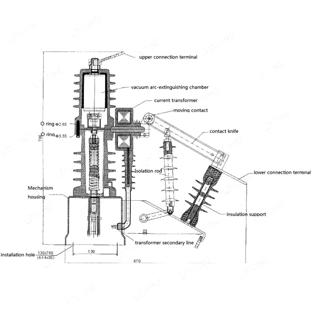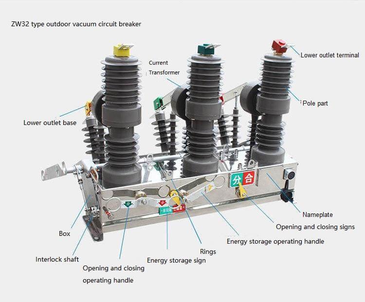 Penebat keluar vakum interrupter mengamalkan selongsong getah silikon, dengan kehidupan yang lebih lama, kebolehpercayaan yang lebih tinggi, rintangan cuaca yang baik, mudah untuk pengangkutan, penarafan yang baik. Mekanisme operasi mengamalkan pengurangan, mekanisme operasi musim bunga yang boleh dipercayai, mempunyai kelebihan struktur mudah, kehidupan mekanikal sehingga 10000 kali.
